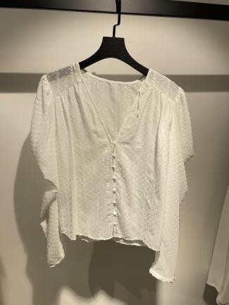 Una prenda clásica con un toque moderno. Su diseño sencillo con botones al frente y un ligero fruncido en el borde inferior crea una silueta delicada y femenina. Es perfecta para combinar con jeans o pantalones formales, ideal para quienes buscan comodidad sin renunciar al estilo.