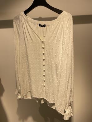 Blusa blanca con botones y detalle fruncido inferior