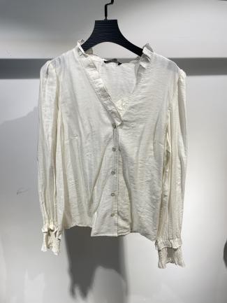 Blusa blanca con botones y encaje en los puños