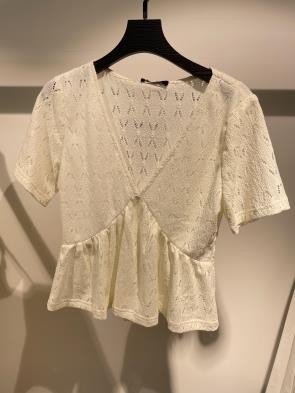 Blusa blanca con corte peplum y escote cruzado