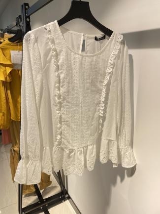 Blusa blanca con volantes frontales y mangas abullonadas