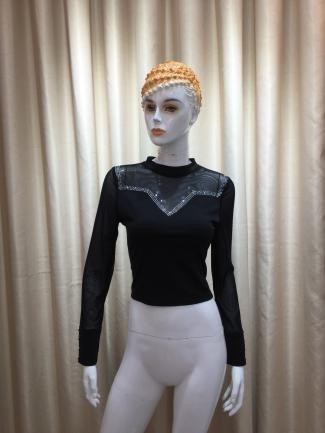 Esta blusa combina elegancia y vanguardia con su cuello alto y transparencias en el pecho y los brazos. Es una prenda perfecta para looks sofisticados y modernos.