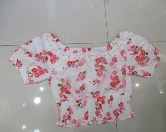 Inspirada en la frescura primaveral, esta blusa deja los hombros al descubierto y luce un encantador estampado floral rosado. Los volantes en el escote le dan un aire romántico y juvenil.