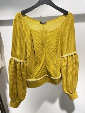 Blusa mostaza con mangas acampanadas y textura acanalada