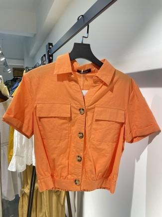 Blusa naranja corta con bolsillos frontales y botones
