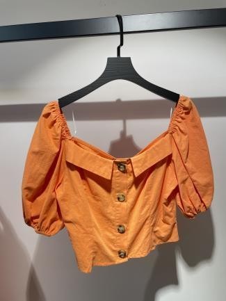 Blusa naranja corta con escote en “V” y botones grandes