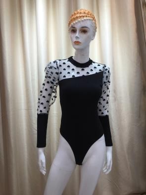 Sofisticado y moderno, este body combina la elegancia del negro con la delicadeza de la malla en las mangas y el escote. Su estilo semitransparente lo convierte en una prenda ideal para noches especiales o eventos con un toque de glamour.