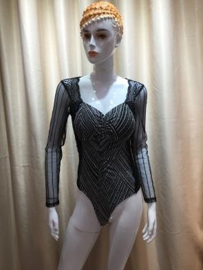 Este elegante body combina sensualidad y sofisticación gracias a sus mangas transparentes y su escote profundo en “V”. Ideal para eventos nocturnos, su diseño ceñido al cuerpo realza la silueta manteniendo un estilo moderno y refinado.