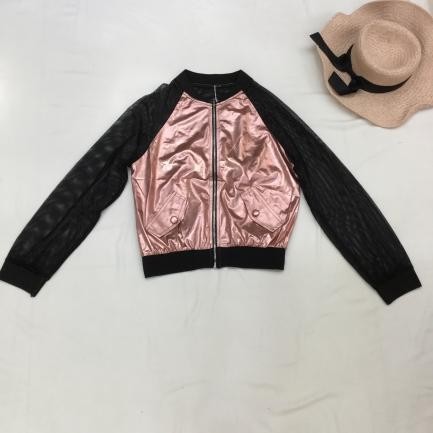 Moderna y urbana, esta chaqueta destaca por su cuerpo metálico en tono cobre y sus mangas negras que contrastan con elegancia. Su diseño ligero y versátil la hace perfecta para combinar con jeans o conjuntos deportivos.