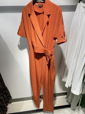 Conjunto sofisticado en vibrante tono naranja, compuesto por un blazer corto de manga corta y pantalón recto. Su estilo moderno y elegante lo hace perfecto para destacar en ocasiones casuales o eventos con un toque de formalidad. Una opción fresca y distinta dentro de la colección.