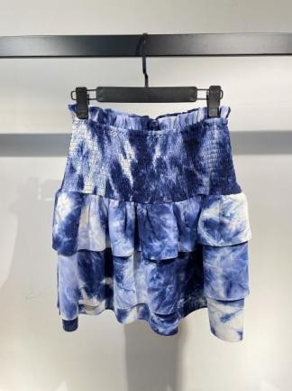 De nuestra colección llega esta falda con diseño en volantes y estampado moderno. Su estilo fresco y cómodo la convierte en una prenda ideal para el verano.