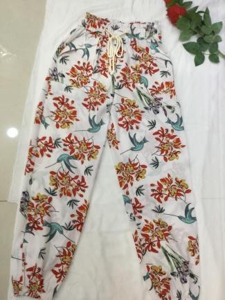 Pantalón blanco con flores tropicales