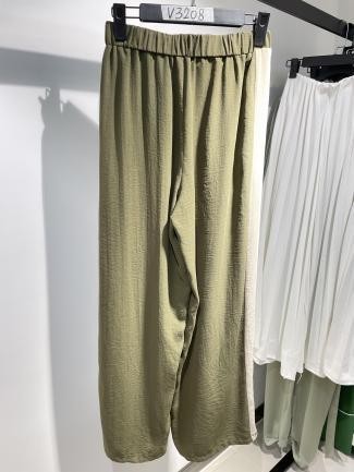 Un pantalón en tono verde oliva, fresco y ligero, pensado para looks relajados y cómodos. Su caída fluida lo convierte en una prenda versátil para combinar con blusas básicas o estampadas.