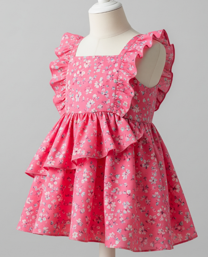 Dale un toque de ternura y alegría al guardarropa de tu pequeña con este encantador vestido infantil. Su diseño con volantes y estampado floral lo convierte en la opción perfecta para ocasiones especiales o para disfrutar un día lleno de diversión. ¡Una prenda cómoda, fresca y con mucho estilo que a tu niña le encantará!