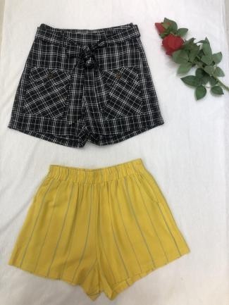 Shorts básicos en diferentes tonos sólidos (negro, amarillo mostaza), ideales para combinar con blusas estampadas o tops ligeros. Su diseño versátil y fresco los convierte en una prenda esencial para climas cálidos.