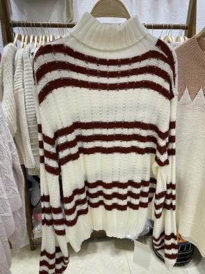 Un suéter moderno y cómodo con diseño de rayas horizontales, perfecto para un look casual y abrigador en los días fríos.
