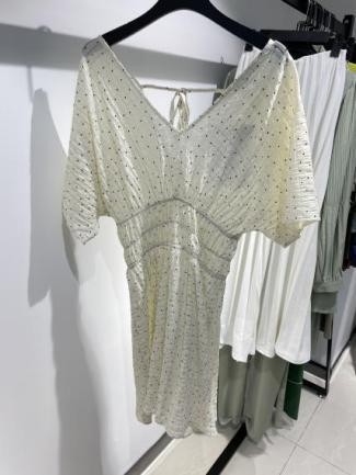 Nuestra nueva colección incluye este vestido con escote en V, un diseño ligero y delicado que aporta frescura y estilo natural. Ideal para climas cálidos.